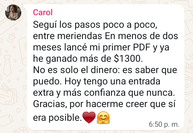 Es lo que muchas mujeres están empezando a construir. Ya no se trata de tener un segundo trabajo... sino de crear una fuente de ingresos digital, con tus conocimientos, tus talentos o simplemente una buena idea.